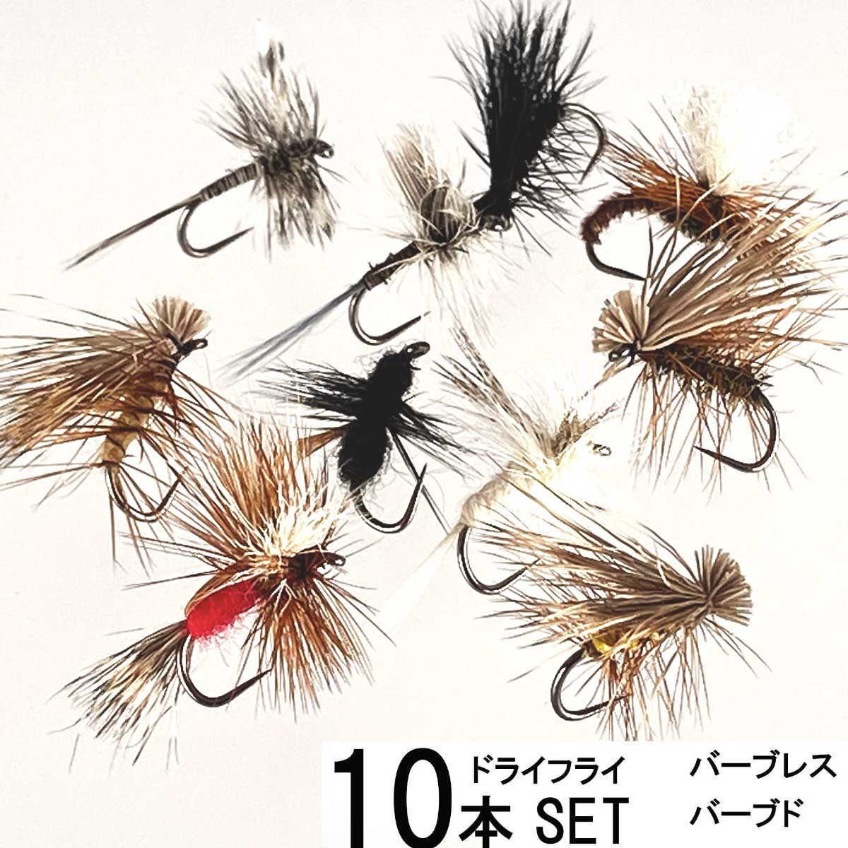 大型エルクヘア カディス10本セット (バーブレス/バーブド) ドライフライ フライフィッシング 完成フライ