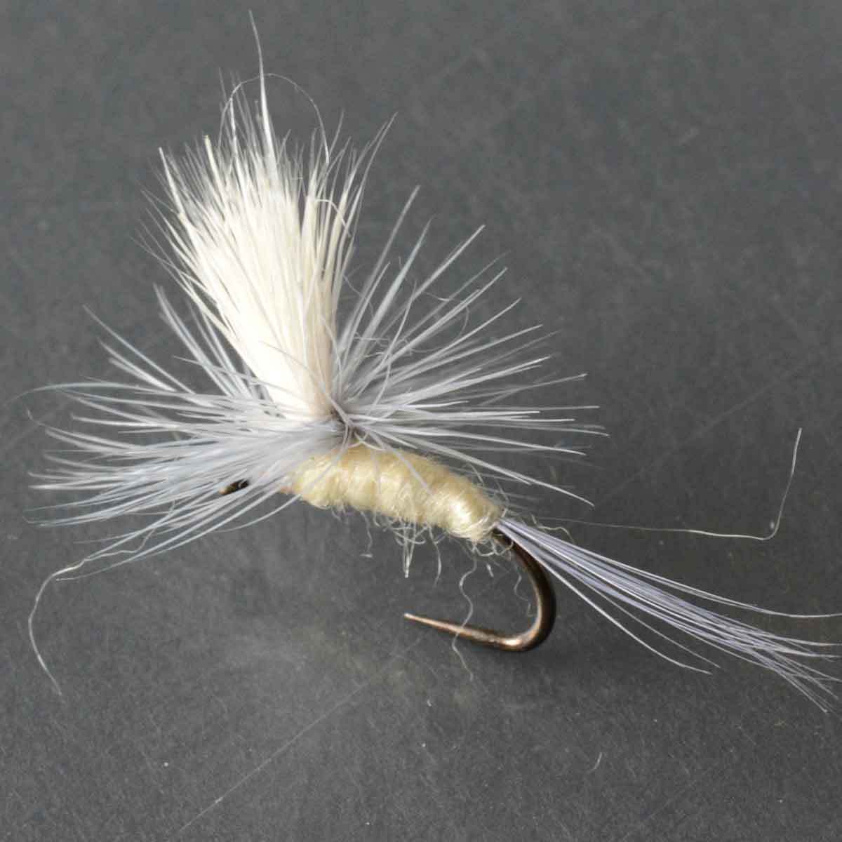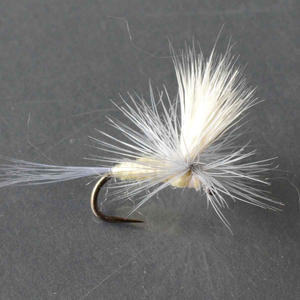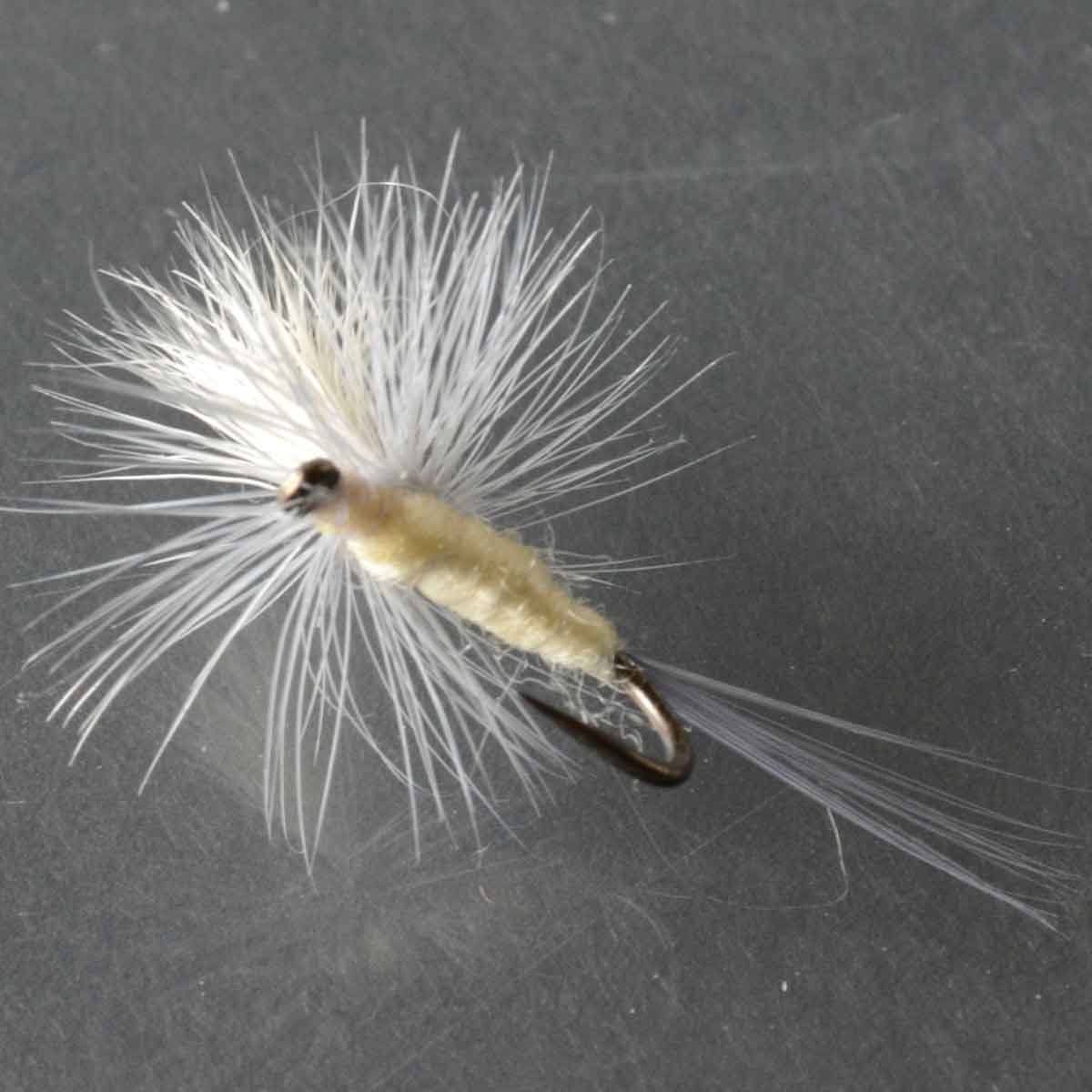 ペールモーニングダン(PMD)をリアルに再現したパラシュートスタイル。高い浮力と視認性でトラウトを誘うドライフライ完成フライです。