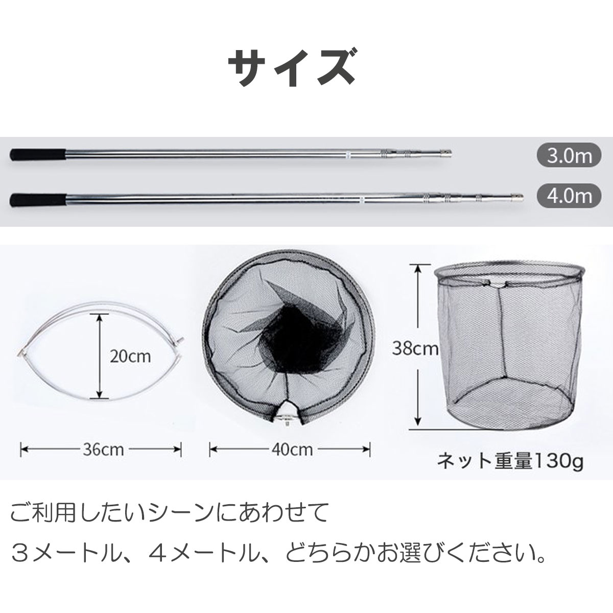 タモ網 たも 網 フレームと網 交換用 4m 3m 堤防 海釣り 海 安い ネット c0234