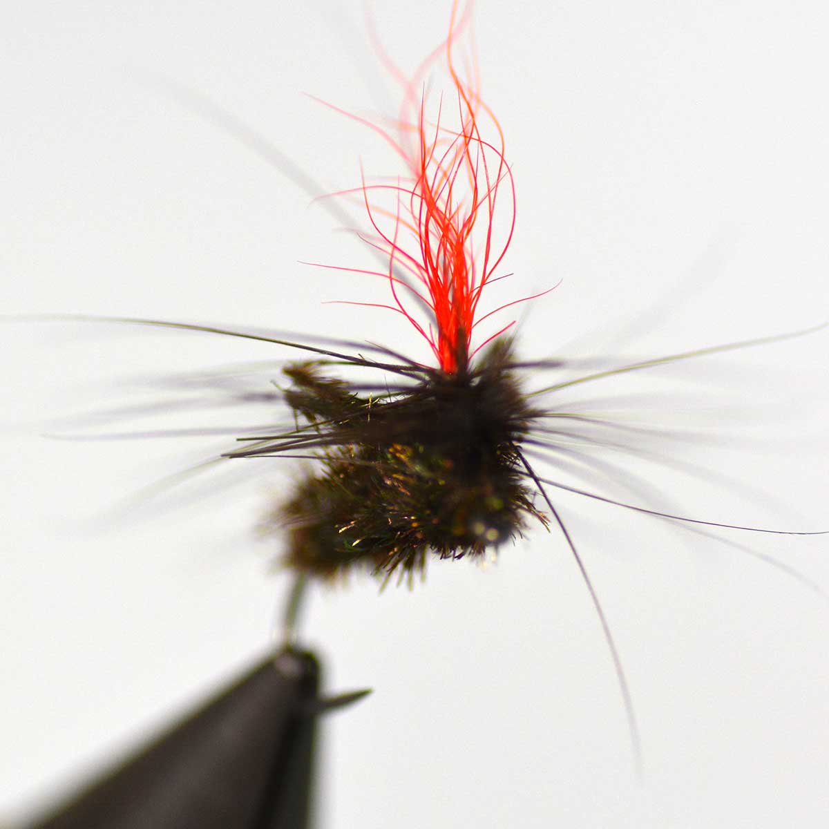 ピーコックボディのナチュラルな艶と、黒ハックルによる生命感あふれるシルエットが、イワナやヤマメの捕食本能を刺激します。